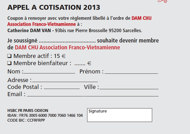Appel cotisation 2013