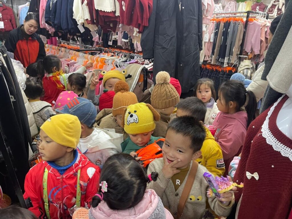 Les enfants de Cach Linh dans un magasin de vêtements.